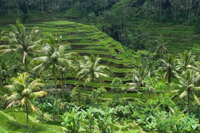 Ubud is located in the central highlands (part of the Gianyar Regency) and is famous for its rice terrace views, rainforests and jungle landscapes